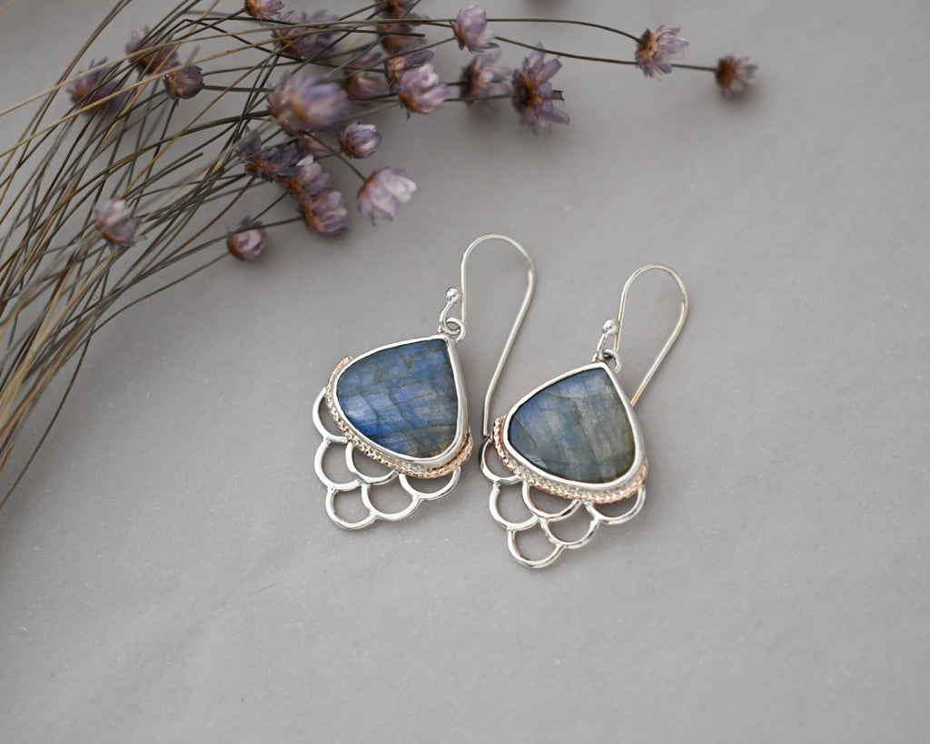 Labradorite Scallop Earrings